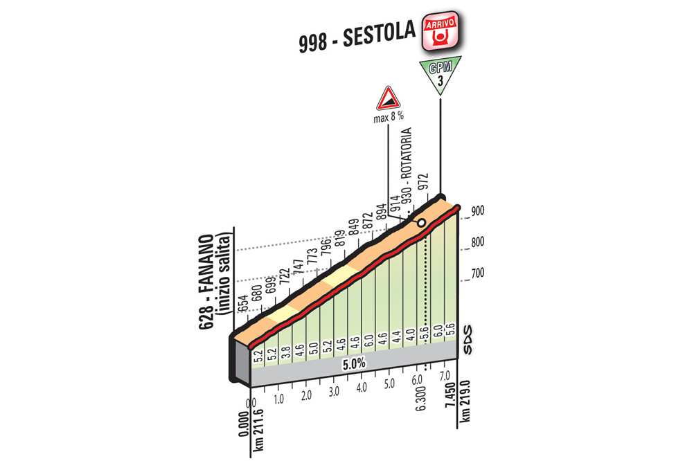Después de coronar esta montaña, los últimos 15 km de carrera serán trepidantes, con un descenso muy rápido y exigente hasta la localidad de Fanano, desde donde comienza la última subida a Sestola, la última del día con siete kilómetros al 5% de desnivel medio. Final en alto.