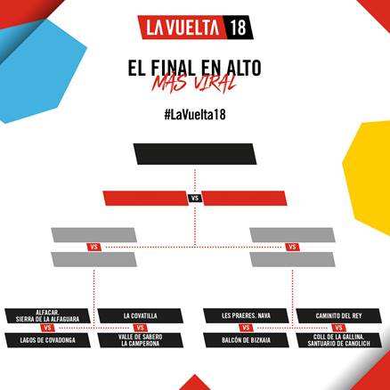 A través de la campaña ‘El final en alto más viral’, que se realizará en el perfil de Facebook de La Vuelta, los seguidores podrán votar cuál es la llegada en alto que más les gusta dentro de las ocho más espectaculares que ofrece esta edición de la ronda española.
