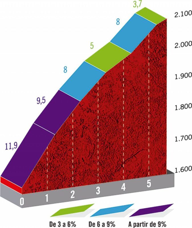 Y para acabar, la traca final… la etapa acaba en la cima de Cortals d´Encamp con 5,7 kilómetros y una pendiente media del 8,3 por ciento. Comienza el puerto final con los dos kilómetros más duros, al 11,9 y al 9,5 por ciento respectivamente.