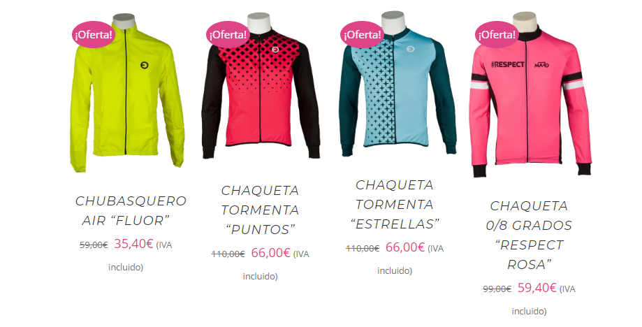 Así, puedes encontrar por ejemplo estas magníficas ofertas en maillots de alta gama que pasan de 59 euros a tan sólo 35,4 euros.